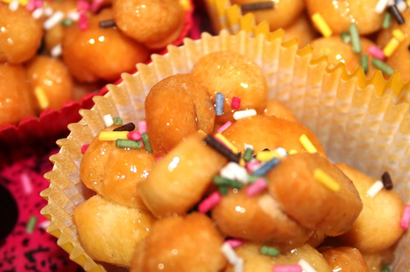 kleine Bällchen aus Mehl und Eiern, im Olivenöl ausgebacken